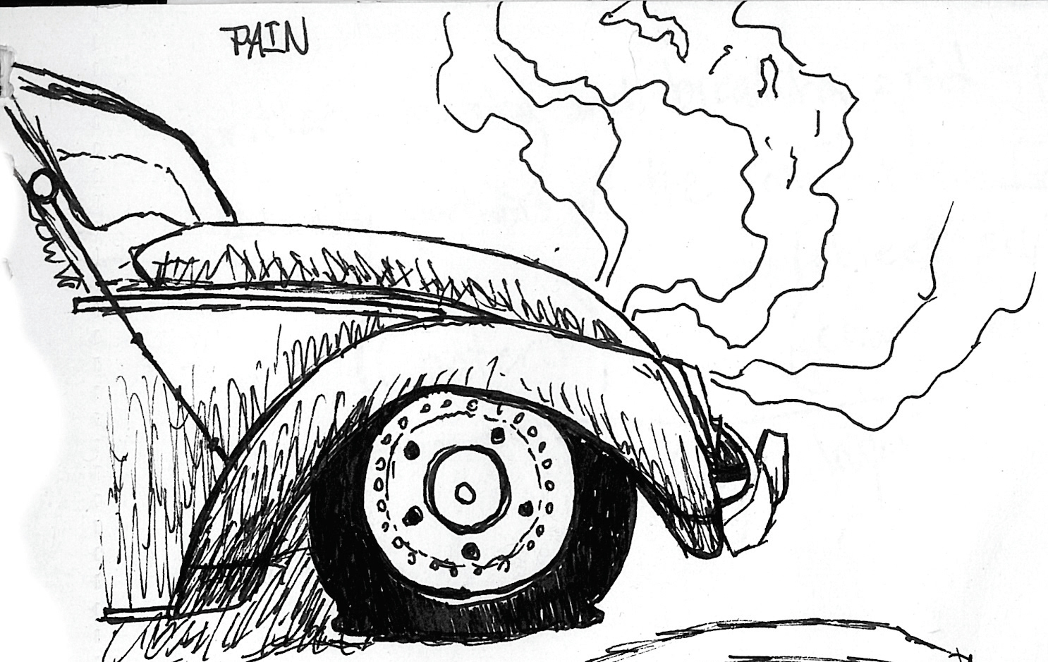 I had to use a Volkswagen Beetle to create a graphic that reads "Pain" picked from a list of words.